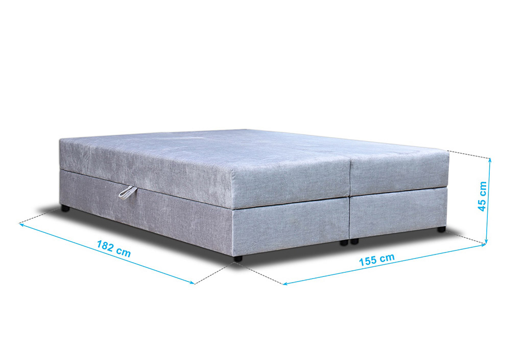 łóżko obite jest z każdej strony wybraną tkaniną, może stać na środku pokoju (wyjątek miejsce łączenia łóżek);