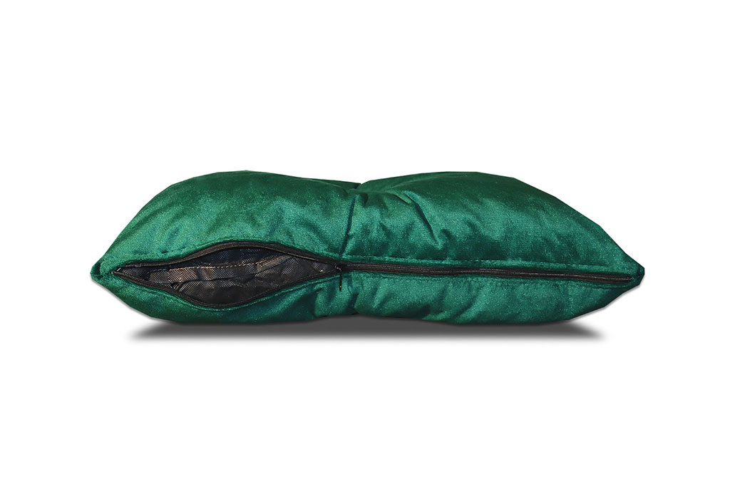 poduszka pikowana jednym guzikiem lub kryształkiem (do wyboru) - pikowanie w okolicach środka - kryształek / guzik znajduje się po obu stronach poduszki